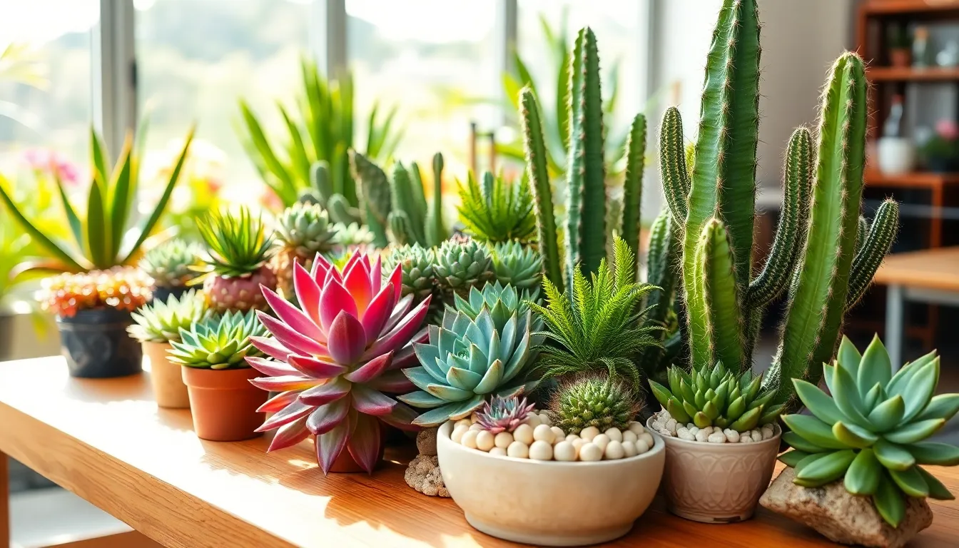 Cacti stand out for their diverse shapes and sizes. These plants store water in their flesh, allowing them to thrive in arid conditions. Spines instead of leaves help minimize water loss. Many cacti produce vibrant flowers, especially during blooming seasons. Varieties like the Saguaro or the Christmas Cactus capture the attention of growers. Sunlight is essential, with most cacti favoring bright, direct light. Regular inspection helps prevent pests, ensuring healthy growth over time.